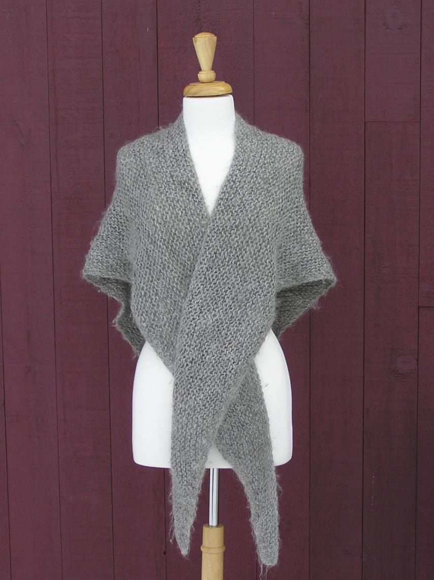 Bear Mountain Shawl Sophisticated take on the classic shawl. Instead of fringe buttonholes are used to create interest along edges. Versatile, tie it, pin it, wrap around head or neck. Very easy pattern Hand knit price: $135 plus S&H Yarn (skein sizes vary) plus pattern approximately $52 plus S&H