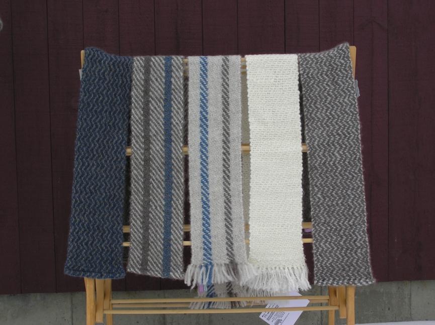 Hand Woven Scarves Woven by Robin Larkin www.colormyloom.com Each scarf is an original design! These are incredibly soft and warm. Robin has used some of our natural indigo dyed yarn and various patterns to create these unique classy scarves. Price $125. plus S&H