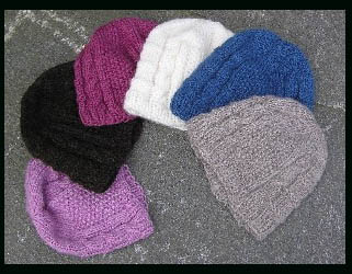 Aran Hats: These Aran hats are classics. The pattern was designed by Jackie Fee the Sweater Workshop author. They are comfy, soft and warm. Advanced level pattern Hand knit price $50 plus S&H Yarn (skein sizes vary) plus pattern approximately $20 plus S&H