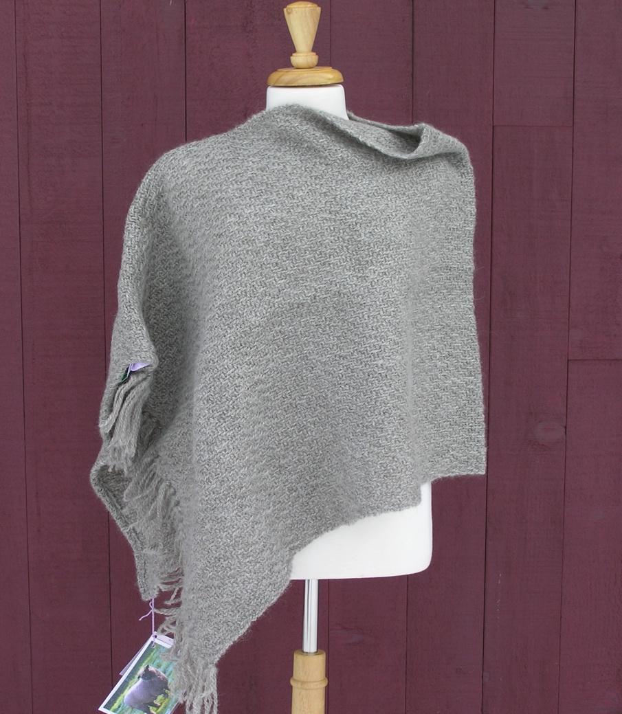 Bear Mountain Poncho Hand woven by Robin Larkin www.colormyloom.com Each poncho comes with a photo of the sheep whose fleece will keep you warm. Robins classic reverse twill weaving pattern highlights the undyed yarn. Treat yourself to a luxurious all natural poncho that you will treasure forever! Price $150 plus S&H